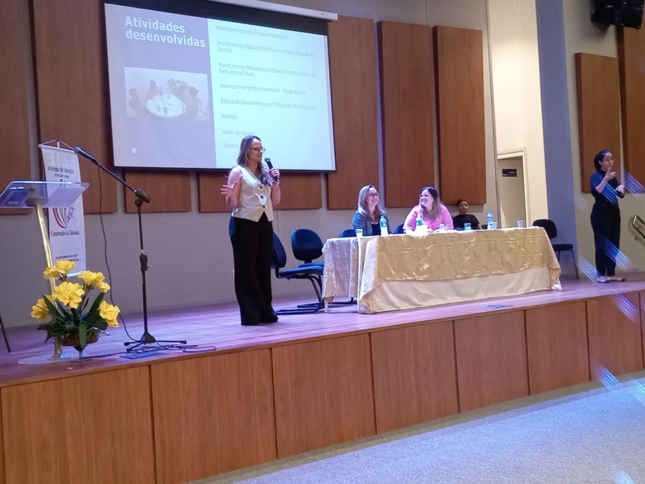 Em seguida a Psicopedagoga Talyta Meirelles, que atua naquele Centro Inclusivo, fez uma abordagem sobre o “Autismo na Escola: possibilidades reais em contextos desafiadores”, voltando seu olhar para os desafios da inclusão, afirmando que a centralidade da inclusão é a criança e o ponto chave, independente da deficiência é presumir competência.
