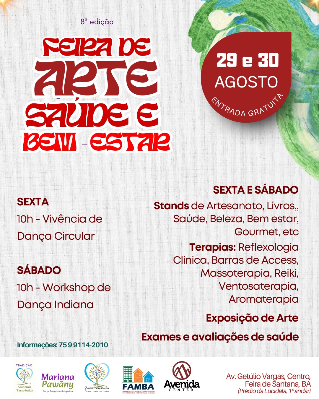 FEIRA DE ARTE SAÚDE E BEM-ESTAR OFERECE PRÃTICAS INTEGRATIVAS COM PREÇO SOCIAL EM FEIRA DE SANTANA - 29 E 30 DE AGOSTO