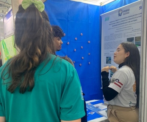 A estudante de Iniciação Científica, Gloria Esther Serra, participou nos dias 8 a 12 de setembro da 10ª FEBIC, a Feira Brasileira de Iniciação Científica, na cidade de Joinville, em Santa Catarina. Como é menor de idade, a estudante fez a viagem com a sua mãe, Patrícia Serra. Esther levou o seu projeto com o título “Desenvolvimento de farinha enriquecida com triptofano como alternativa terapêutica para migrânea em indivíduos com Transtorno do Espectro Autista (TEA)”. Como resultado, conseguiu ganhar o prêmio de melhor projeto do Nordeste.