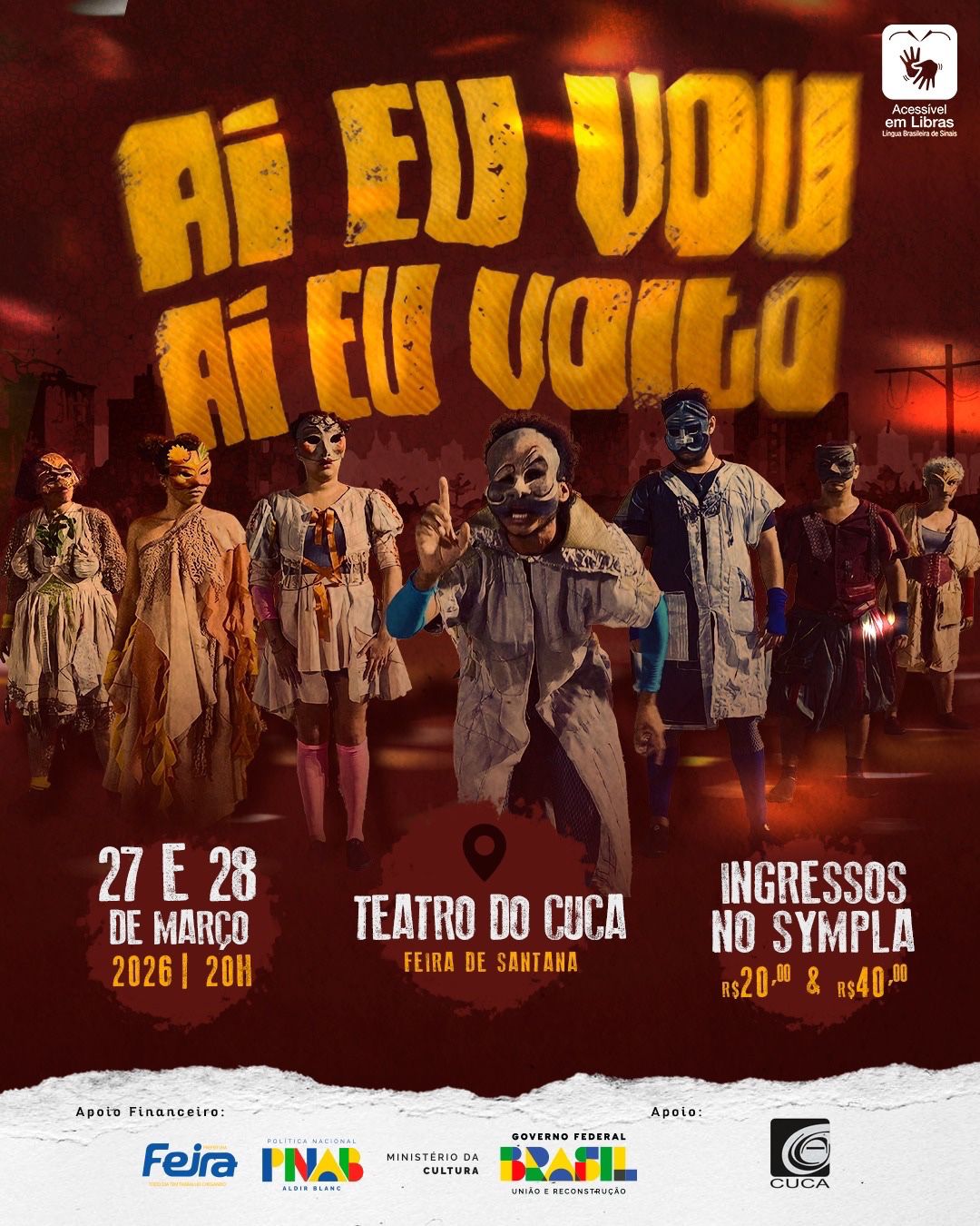 O espetáculo “Aí Eu Vou, Aí Eu Volto” foi contemplado nos Editais da Política Nacional Aldir Blanc Bahia (PNAB) e conta com apoio financeiro da Prefeitura de Feira de Santana, por meio da Secretaria Municipal de Cultura, Esporte e Lazer, via PNAB, com recursos do Ministério da Cultura – Governo Federal