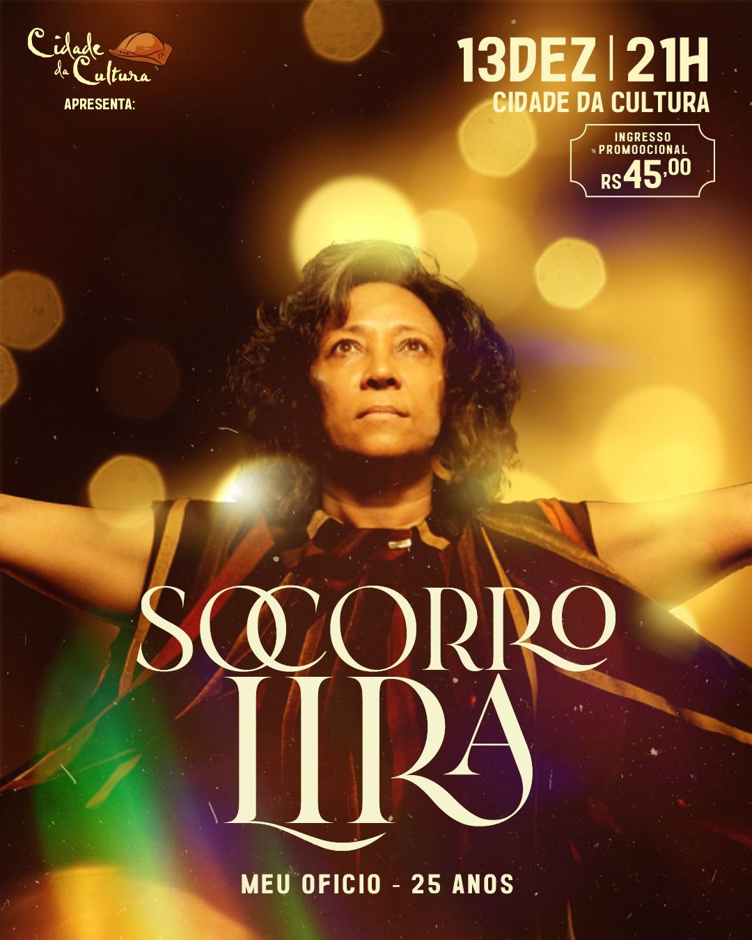 SOCORRO LIRA, NESTE SÁBADO, NA CIDADE DA CULTURA EM FEIRA DE SANTANA