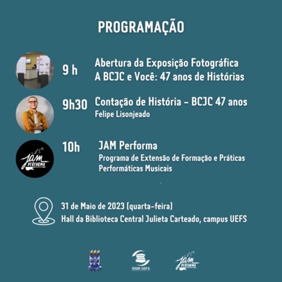 O Sistema de Bibliotecas da UEFS (SISBI UEFS) promove no dia 31 de maio, a partir das 9 horas, uma programação especial com atividades gratuitas ao público para celebrar os 47 anos de criação da Biblioteca Central Julieta Carteado (BCJC).