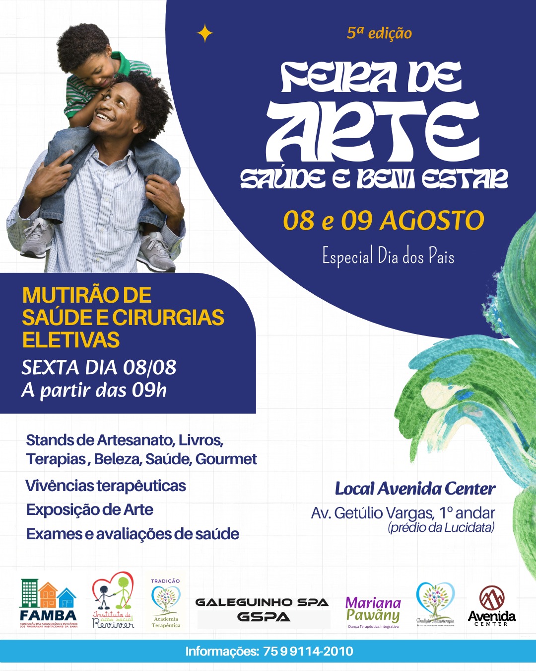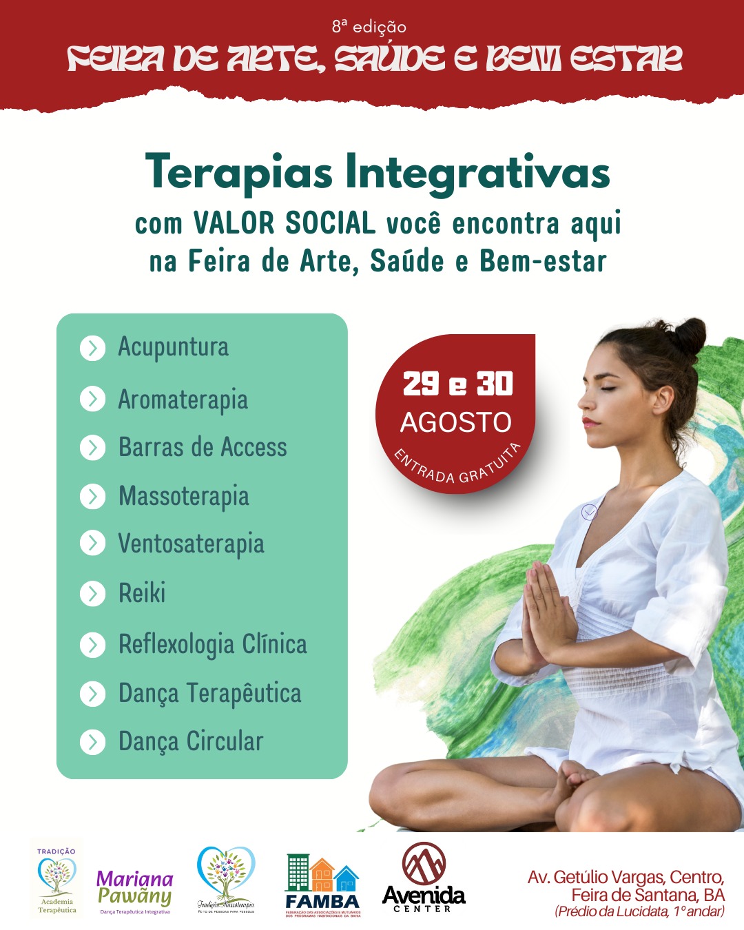 FEIRA DE ARTE SAÚDE E BEM-ESTAR OFERECE PRÃTICAS INTEGRATIVAS COM PREÇO SOCIAL EM FEIRA DE SANTANA - 29 E 30 DE AGOSTO