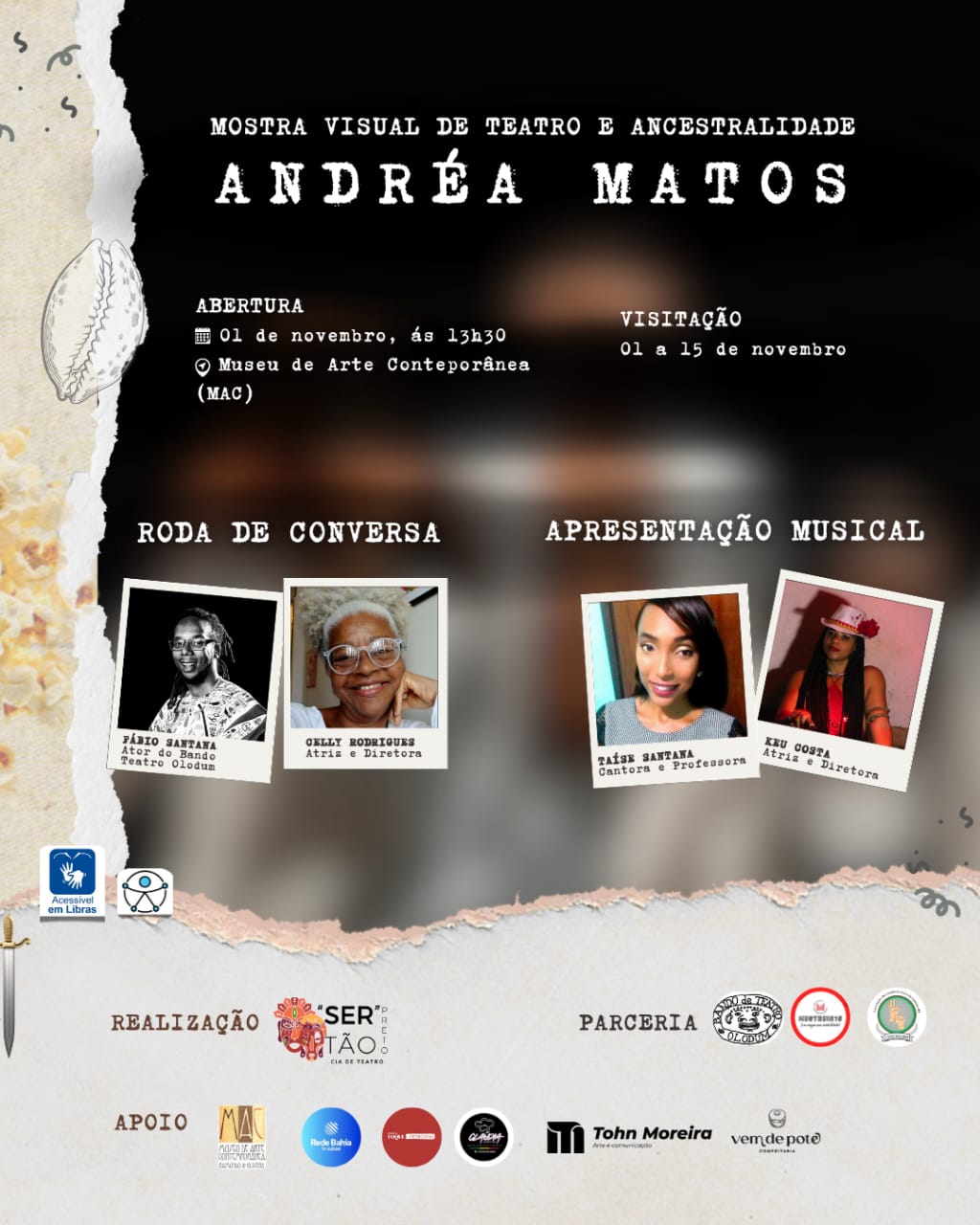 Passando para te convidar para a abertura da exposição Mostra Visual de Teatro e Ancestralidade Andréa Matos, promovida pela “Ser”tão Preto Cia. de Teatro em celebração ao Novembro Negro e à memória da atriz, poetisa, professora, escritora e nossa eterna baobá, Andréa Matos.