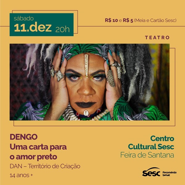 Sábado - 11/12 - 20h [14 anos +] Espetáculo Dengo - Uma carta para o amor preto ...