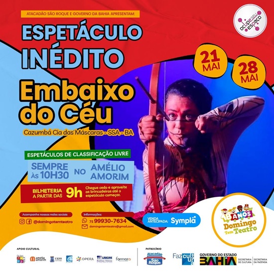 INFORMAÇÕES/PRODUÇÃO: (75) 9.9930-7634 (WhatsApp) | Instagram: @domingotemteatro   |   E-mail: domingotemteatro@gmail.com   |