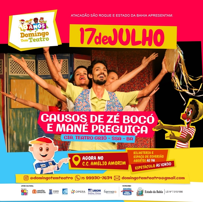 INFORMAÇÕES/PRODUÇÃO: (75) 9.9930-7634 (WhatsApp) | Instagram: @domingotemteatro   |   E-mail: domingotemteatro@gmail.com   |