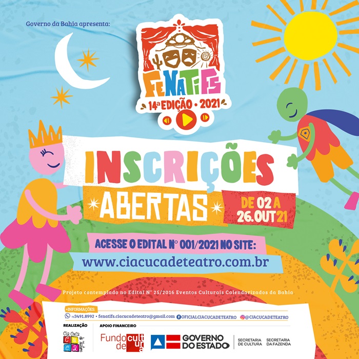 O Fenatifs prossegue até o dia 12 de outubro e conta com o apoio financeiro do Governo do Estado, através do Fundo de Cultura, Secretaria da Fazenda e Secretaria de Cultura da Bahia, através do Edital Nº 03/ 2023 - Eventos Culturais Calendarizados.