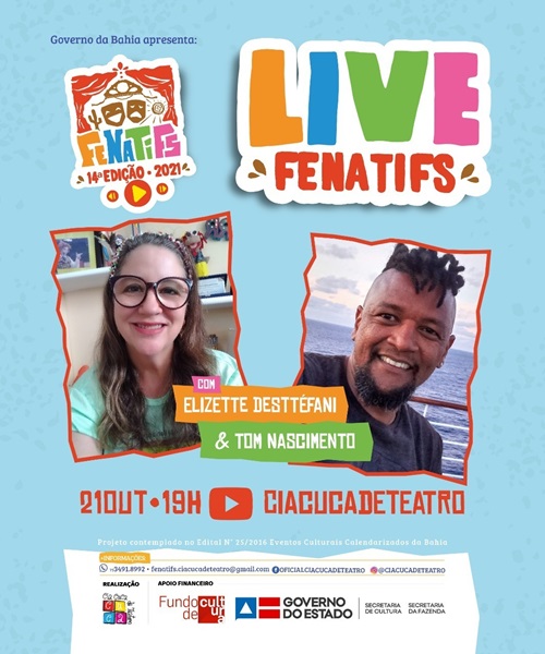 A Cooperativa de Teatro para a Infância e Juventude da Bahia - Cia. Cuca de Teatro é a responsável pela realização do Fenatifs. Acesse a programação completa: www.ciacucadeteatro.com.br/fenatifs.