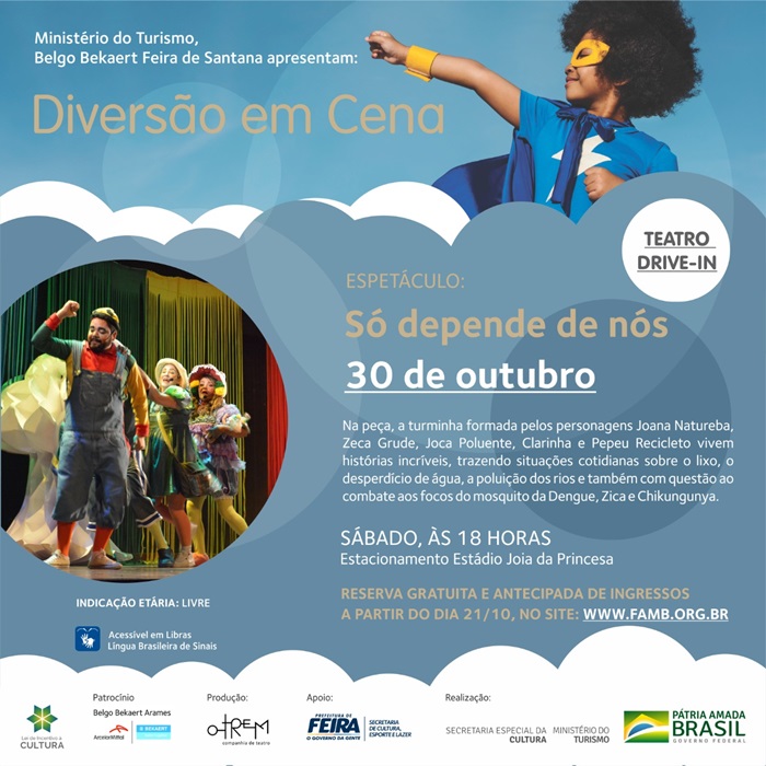 Este projeto genuinamente feirense, de ações continuadas, promove apresentações teatrais para crianças e públicos de todas as idades, valorizando artistas e a cultura local. Criado em 2005 por Henrique Motté (1963-2019) e Elizete Destéffani-Motté, o Domingo Tem Teatro construiu uma forte relação de afeto com seu público, promovendo diversão, formação cultural e a construção do pensamento crítico e respeito às diferenças. São 20 anos de dedicação às artes cênicas, voltadas às infâncias e juventudes. Para essa temporada o Projeto conta com o patrocínio do Atacadão São Roque, Pererê Peças e Governo do Estado, através do Fazcultura, Secretaria de Cultura e Secretaria da Fazenda.