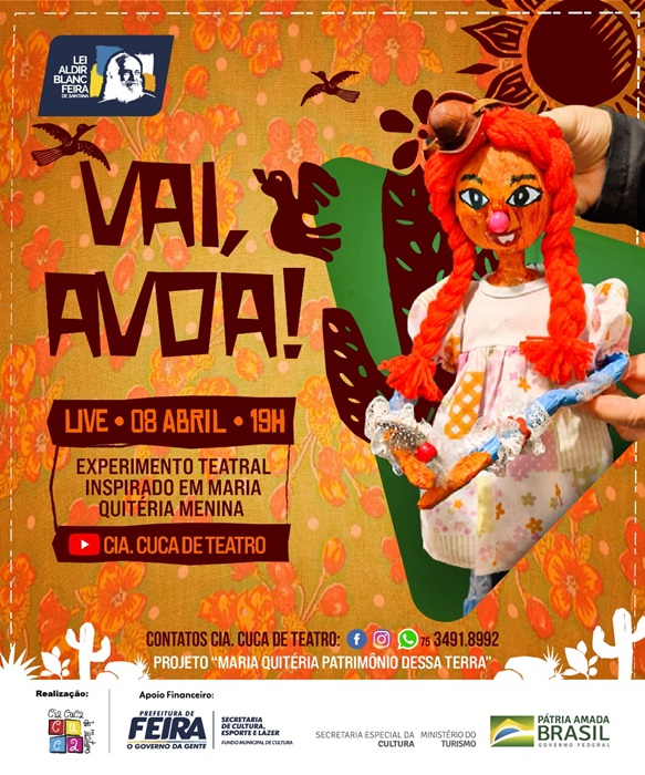 INFORMAÇÕES/PRODUÇÃO: (75) 9.9930-7634 (WhatsApp) | Instagram: @domingotemteatro | E-mail: domingotemteatro@gmail.com | www.ciacucadeteatro.com.br