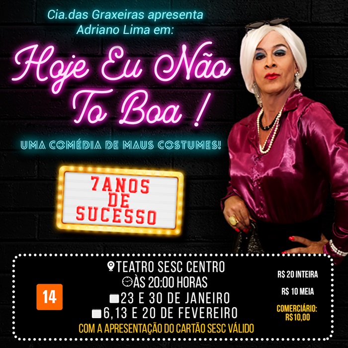 Estrelada e dirigida pelo premiado ator Adriano Lima, a montagem é um monólogo cômico e provocativo protagonizado pela irreverente Maria do Socorro — uma mulher madura, sem papas na língua, que diverte e emociona ao compartilhar reflexões sobre aposentadoria, etarismo e o papel da mulher acima dos 50 anos, sempre com muito humor e crítica social.