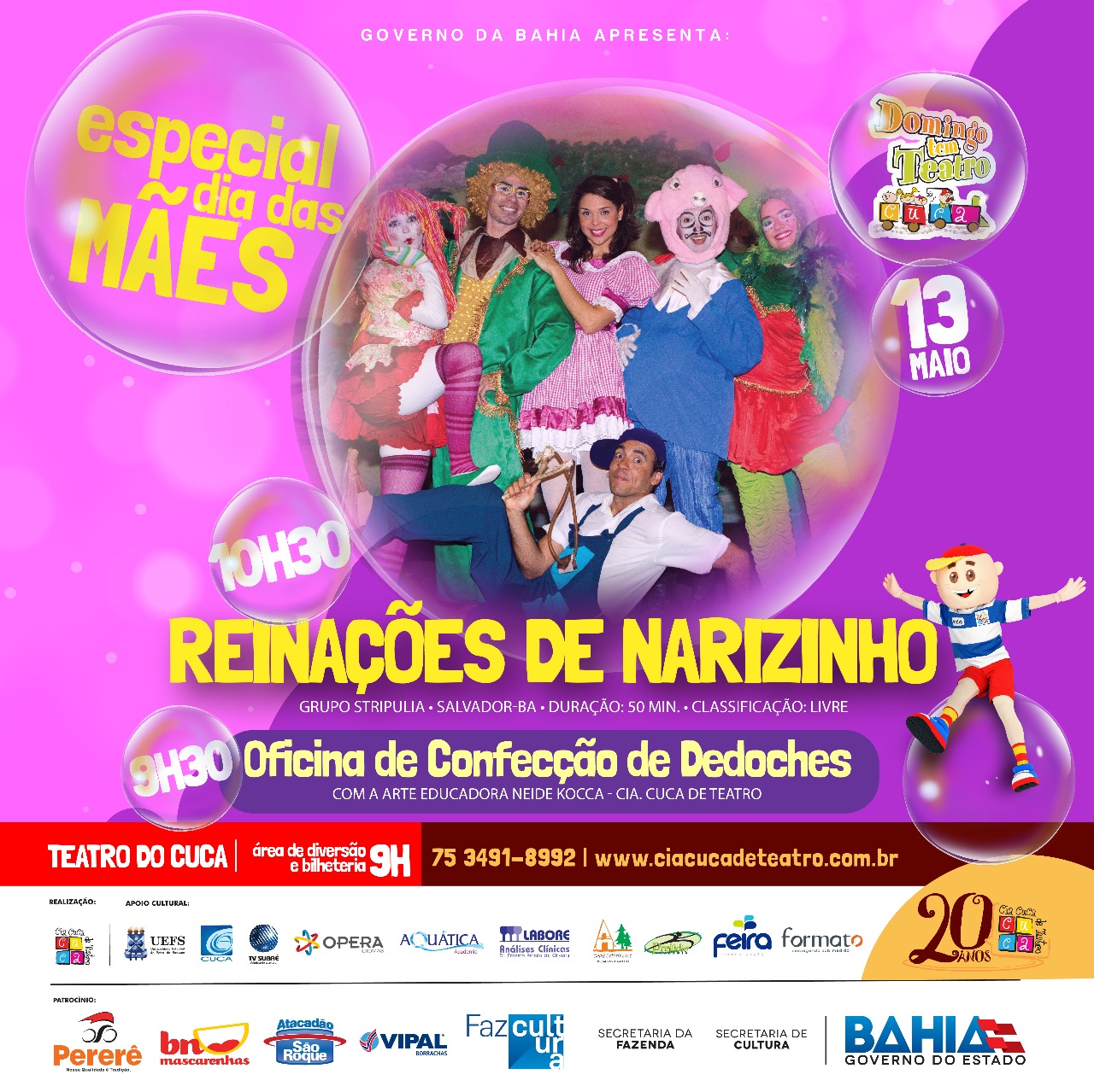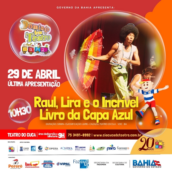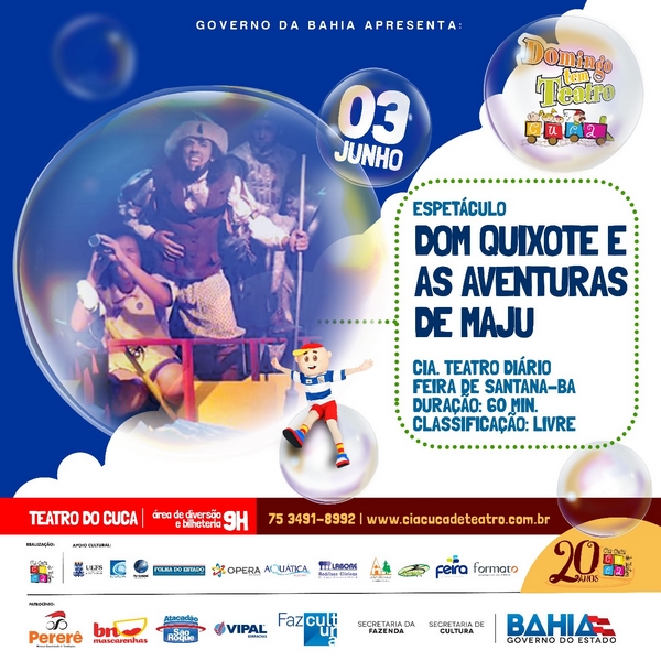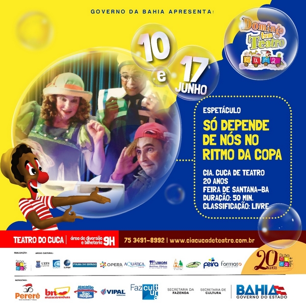 - INFORMAÇÕES/PRODUÇÃO: (75) 9.9930-7634 (WhatsApp) | Instagram: @domingotemteatro   |   E-mail: domingotemteatro@gmail.com   | www.ciacucadeteatro.com.br