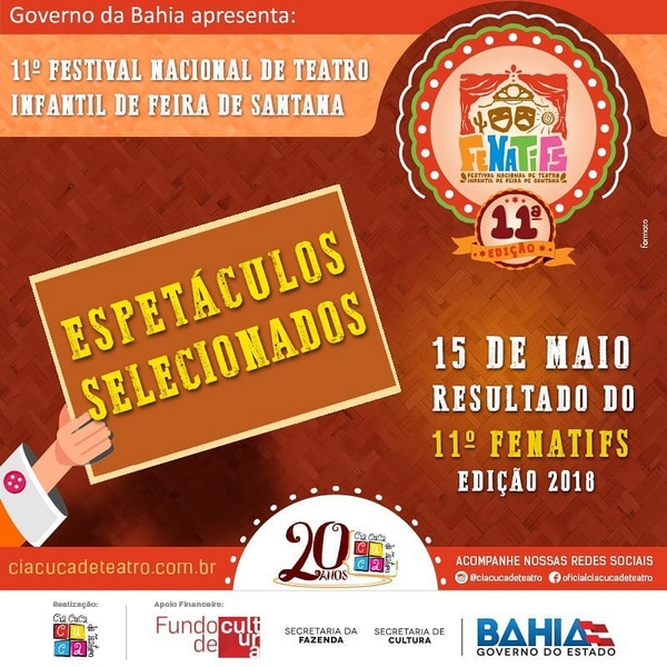 A Cooperativa de Teatro para a Infância e Juventude da Bahia - Cia. Cuca de Teatro é a responsável pela realização do Fenatifs. Acesse a programação: www.ciacucadeteatro.com.br/fenatifs.