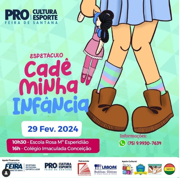 Uma história que celebra o regionalismo e a força da infância sertaneja, feita especialmente para encantar o nosso público. As apresentações estão previstas para 9h30 e 14h30 no auditório da Secretaria de Educação de Feira de Santana (SEDUC).