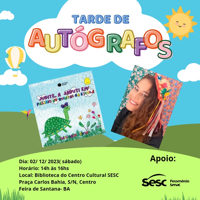 O lançamento do primeiro livro de Sophia Trindade foi contemplado pela Prefeitura Municipal de Feira de Santana, Secretaria Municipal de Cultura, Esporte e Lazer e pela PNAB – Política Nacional Aldir Blanc, Ministério da Cultura, Governo Federal.