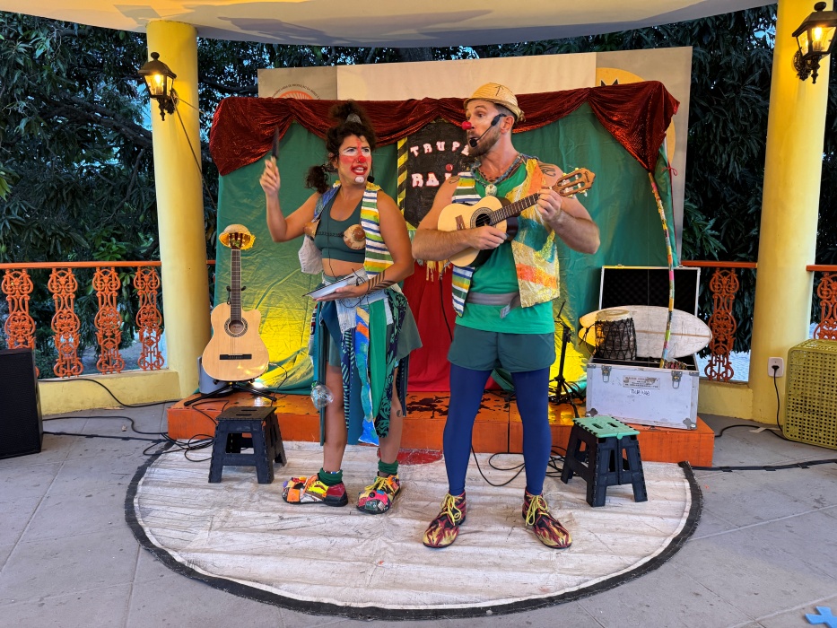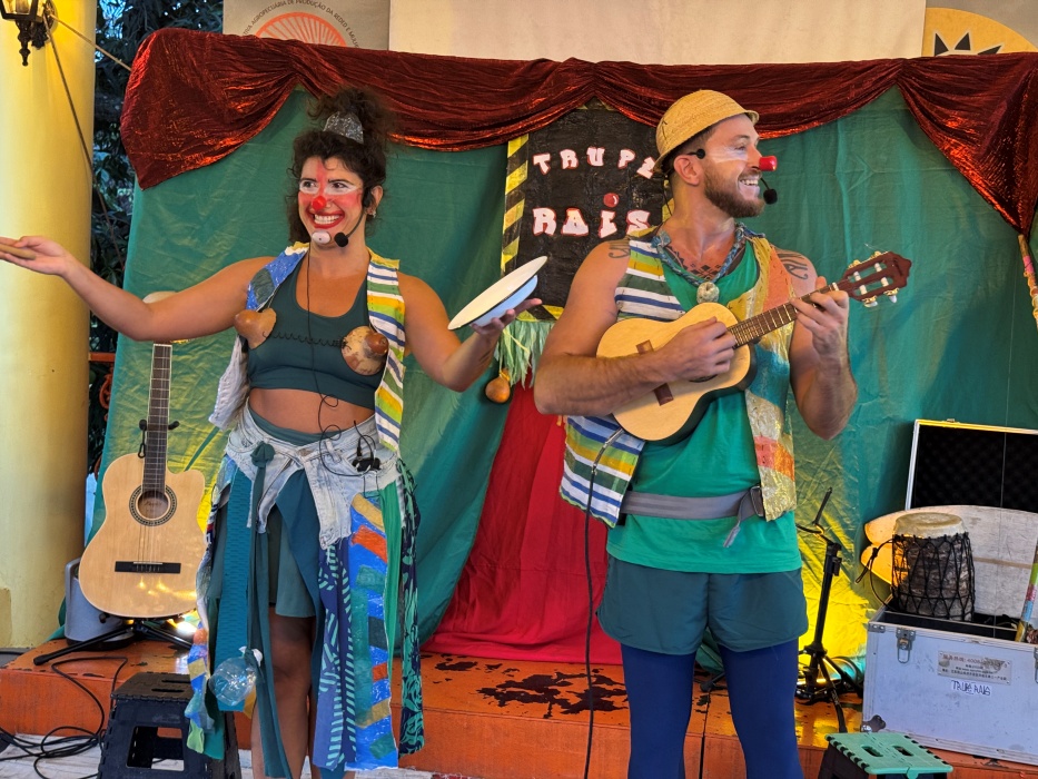 Prepare-se para conhecer uma árvore mágica, a Gameleira, onde a música, o circo e a natureza se unem para contar histórias de um jeito que você nunca viu. Nessa aventura, os palhaços Sirikita e Sujeitão brincam com ritmos do samba, capoeira e até reggae. Eles precisam da sua ajuda para encontrar o caminho de volta para casa e descobrem que, quando todo mundo canta e se diverte junto, a resposta aparece! Um espetáculo cheio de riso, música boa e acrobacias que vão te deixar de boca aberta. Venha vozeiar com a gente no Domingo Tem Teatro e descobrir que a sua voz também é muito importante!