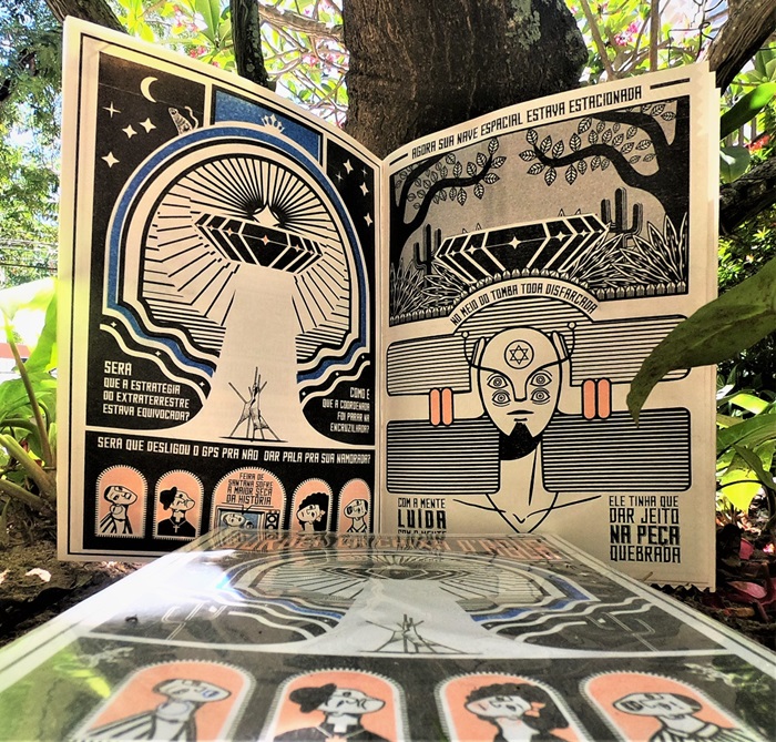 Os desenhos guiam os leitores numa aventura surrealista, na qual Ovnis e Ciborgues se misturam com monumentos, gírias e personagens clássicos da Princesa do Sertão. “É a Fêra corrida no pique do futuro do pretérito imperfeito”, brinca Uyatã.