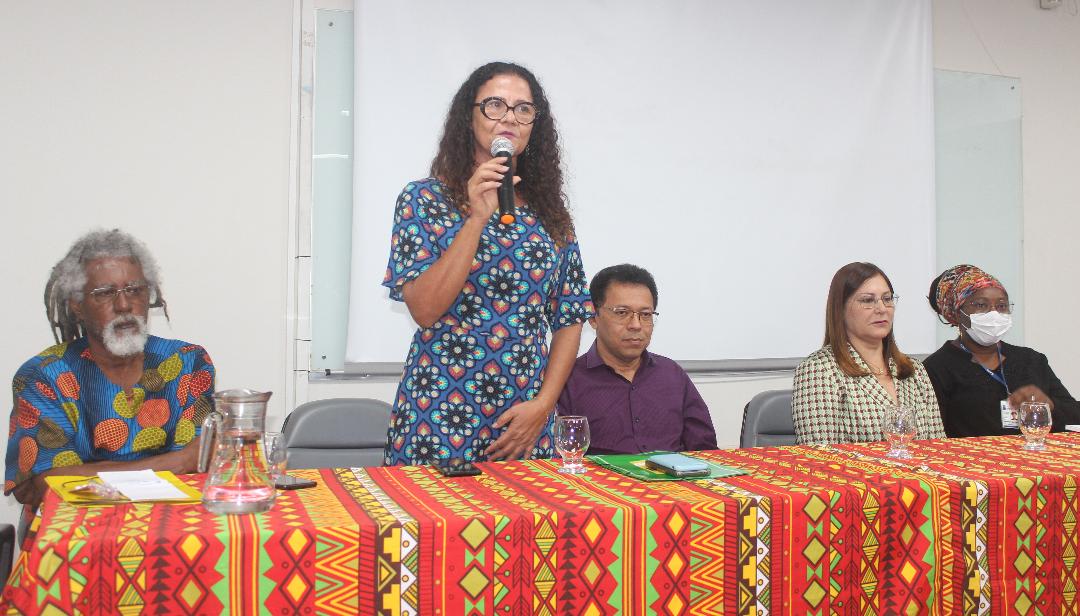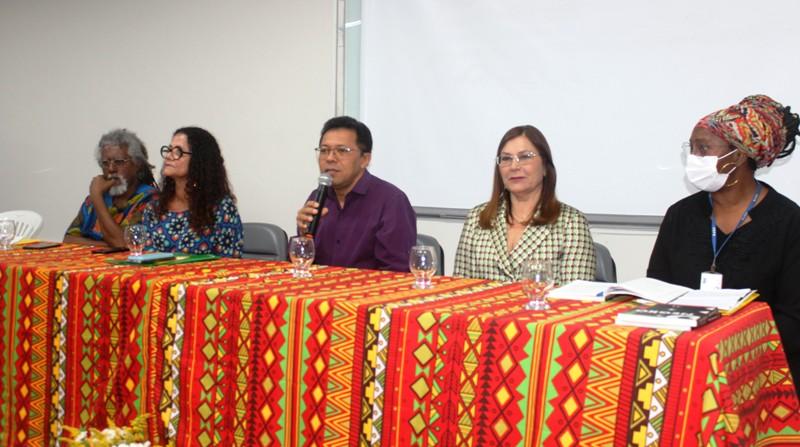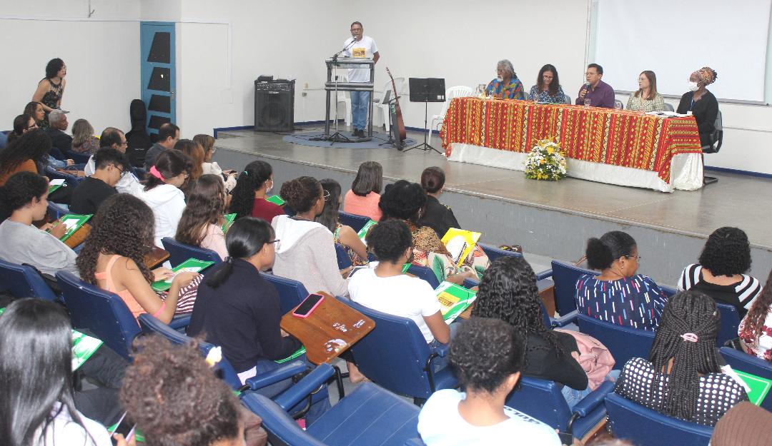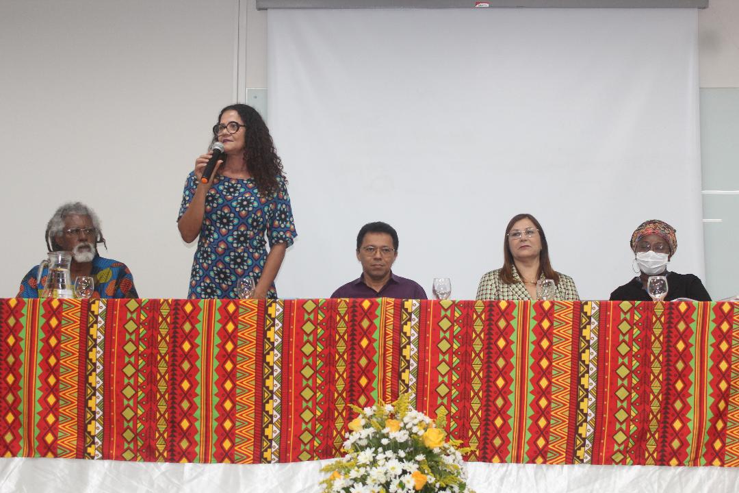 A programação do Novembro Negro na Universidade Estadual de Feira de Santana (Uefs) foi iniciada oficialmente na manhã da segunda-feira (07), com a solenidade de abertura que ocorreu no Auditório 3 do Módulo 4. A 4ª Edição do Novembro Negro tem como tema 'Dia da consciência negra: mais de meio século de lutas!', e acontece durante todo o mês. De acordo com o reitor da Uefs, professor Evandro do Nascimento, o evento é uma oportunidade para fazer uma reflexão profunda sobre as questões do racismo que incidem sobre a população negra. 'A luta contra o racismo na nossa sociedade e também na universidade deve ser um papel assumido de forma constante por todos nós. A universidade pode ser vista como espelho, como farol, por isso nós temos o papel de combater o racismo de todas as formas. Essa reflexão precisa estar presente na universidade e em todos nós durante todo o ano, durante todos os anos', ressaltou. A programação do Novembro Negro é realizada pela Pró-reitoria de Políticas Afirmativas e Assuntos Estudantis (Propaae) da Uefs, em parceria com grupos e pessoas que realizam lutas em prol de uma sociedade antirracista, conforme explicou a professora Sandra Nívia Soares, pró-reitora da Propaae. Durante a solenidade de abertura a pró-reitora destacou ainda que 'é preciso que práticas sejam construídas cotidianamente. Que estejamos atentos e fortes para a construção de mais do que uma universidade antirracista, de uma sociedade antirracista. Apenas dessa forma teremos sensibilidade para compreender as estratégias de reparação construídas por negros e negras que, por vezes, causam uma reviravolta no conjunto da sociedade, porque é assim que tem que ser. Afinal, se não for assim, não estamos caminhando para uma revolução que é o que pretendemos', afirmou a professora Sandra Nívia Soares. A palestra de abertura, proferida pelo professor mestre Marco Antônio Cardoso, da Universidade Federal de Minas Gerais (UFMG), trouxe reflexões acerca da ancestralidade das lutas e da importância disso para a resistência e papel social do movimento negro. 'Falar de consciência negra é, sobretudo, falar de memória. Combater política e culturalmente o racismo no Brasil, lutar contra discriminação racial na sociedade brasileira, nada disso é possível ser feito sem a referência fundamental que é o continente africano. Pensar a nossa existência na sociedade brasileira é falar de território, e o nosso corpo é território, é memória. A partir desse corpo é que se inicia o processo de existência, seja pela forma da ancestralidade ou da resistência. Parece que esse processo de resistência começa com o movimento negro dos anos 70, mas não é. Esse processo é muito mais anterior, daí a minha saudação à ancestralidade', pontuou o palestrante. A mesa de abertura contou a mediação da professora Andreia Beatriz Santos, docente do Colegiado de Medicina e líder do movimento comunitário 'Reaja ou será morto/morta', que promove discussões e ações em defesa da população negra do Brasil. Também participaram do evento de abertura, os artistas Hugo Damasceno, Denise Fersan e Luma Eduarda Cerqueira.