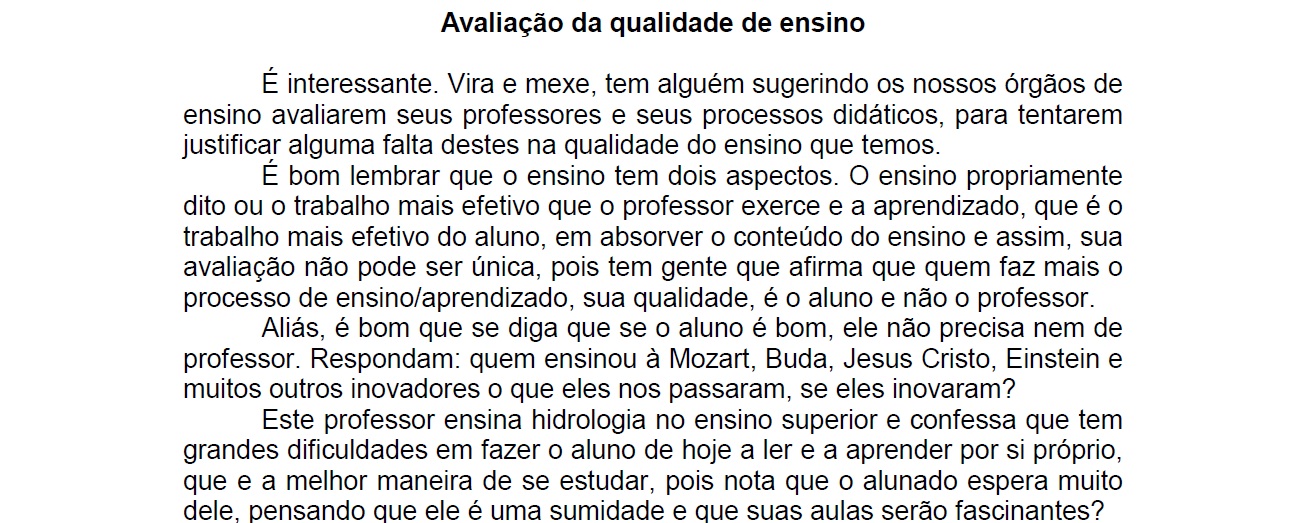 A visão critica do Professor Novaes discorre sobre a avaliação da qualidade dos nossos professores.