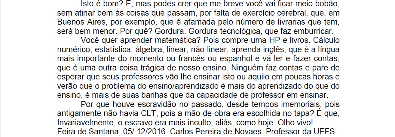 Acompanhem no Viva Feira as matérias da lavra do professor Carlos Novaes.