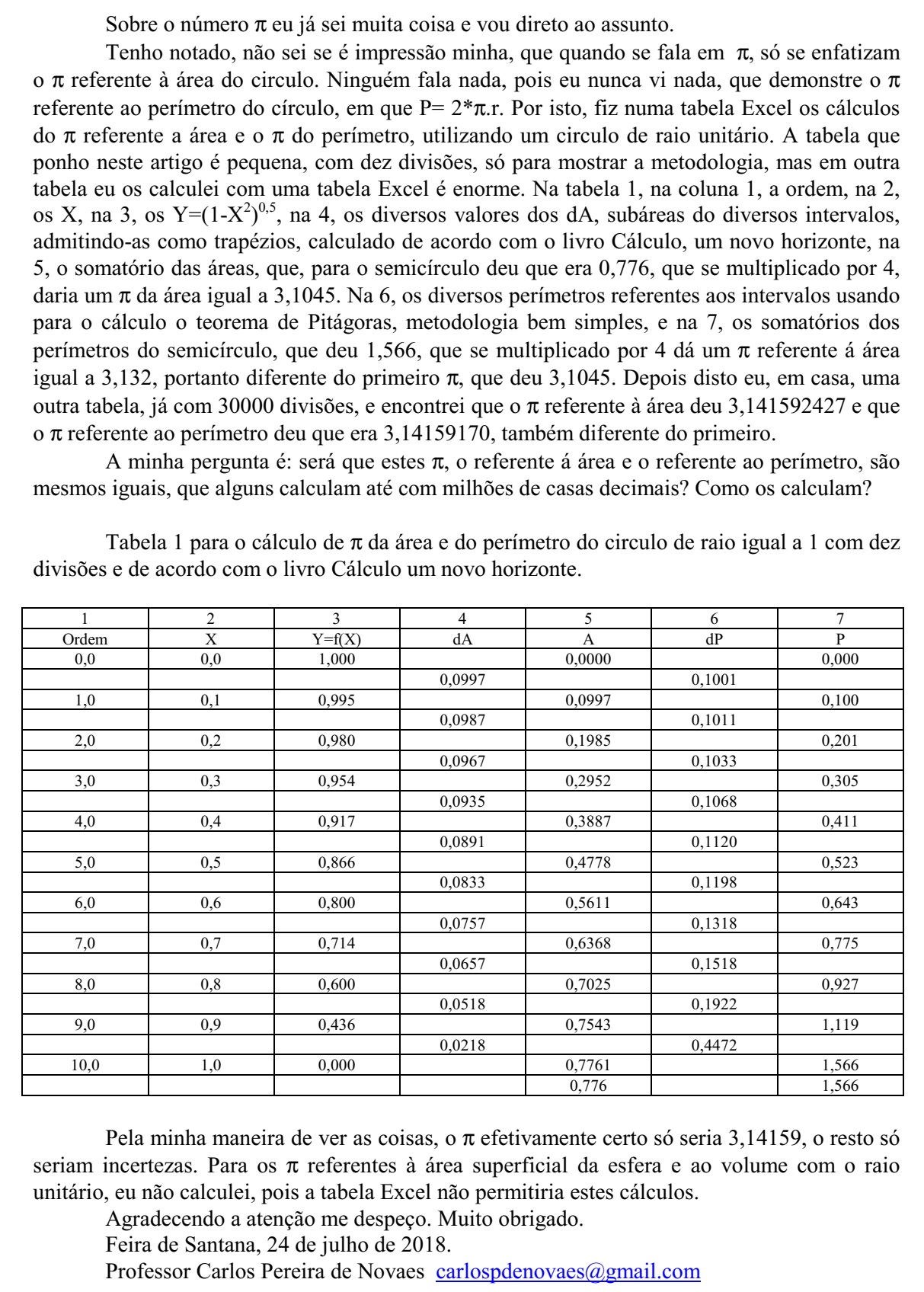 "Uma coisa que ele gostaria de ver", como deixa claro em seus dados biográficos nos livros de sua lavra, "é esse alunado de matemática e seus professores o contestarem com argumentos sólidos sobre estes assuntos que trata" em seus livros "e não só com opiniões dogmáticas sobre os mesmos, onde se nota a tibieza das opiniões destes sectários das opiniões centenárias, muitas vezes, sem as mínimas condições de serem aprovadas hoje em dia, como é a tal igualdade de Euler, eiπ + 1 = 0," que conta, "e com uma simples HP" o que mostra no inicio do livro acima referido.